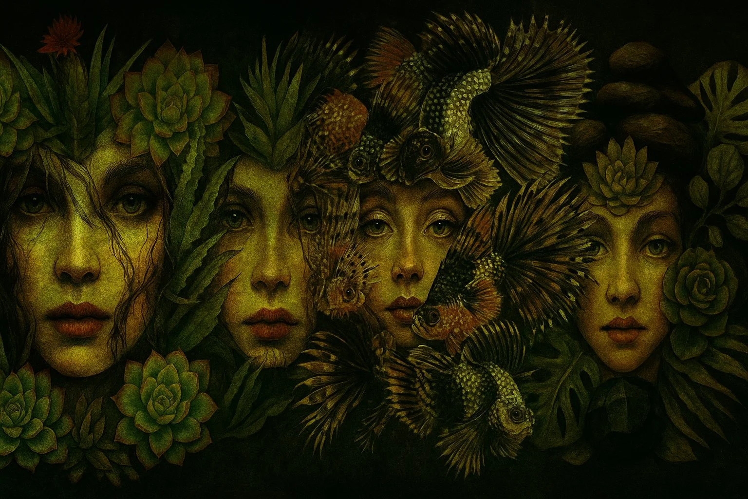 The Eternal Lover series is not bound by one style or a single visual approach. Instead, it unfolds as a tapestry of explorations — from the allegorical fairytale of The Princess and the Red Goldfish to the mechanical-symbolic vision of Eye of the Future, from the organic resilience of Stone and Soul to the haunting allure of Velvet Shadows.